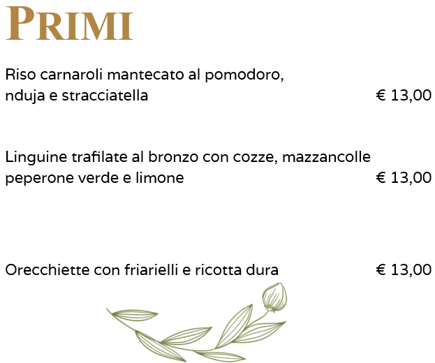 A scelta tra una proposta dei primi, più una proposta dei secondi, compreso coperto, e acqua